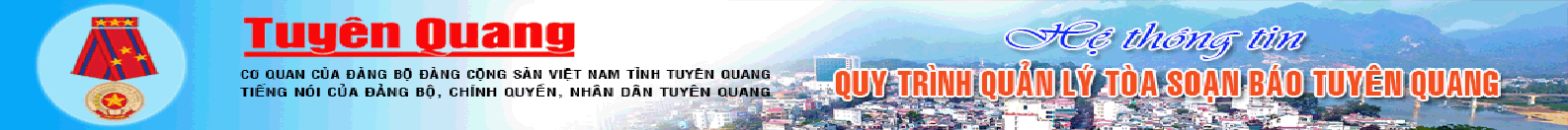 Bản quyền thuộc BÁO TUYÊN QUANG - Địa chỉ: Đường Nguyễn Hữu Thọ, Phường Tân Hà, Thành phố Tuyên Quang Tổng biên tập: Mai Đức Thông - Phó Tổng biên tập (Duyệt bài): Ngô Thị Thu Hà, Nguyễn Thị Hoài Yên, Nguyễn Bình Minh, Mai Ngọc Quỳnh Biên tập lần 1: Trần Liên; Trịnh Thủy Châu; Chúc Ngọc Huyền; Phạm Thị Huyền, Ma Ngọc Hưng, Đặng Kim Tiến, Nguyễn Huy Toán, Tạ Thị Hương Biên tập lần 2: Phan Việt Hòa; Nguyễn Thị Minh Tuyên